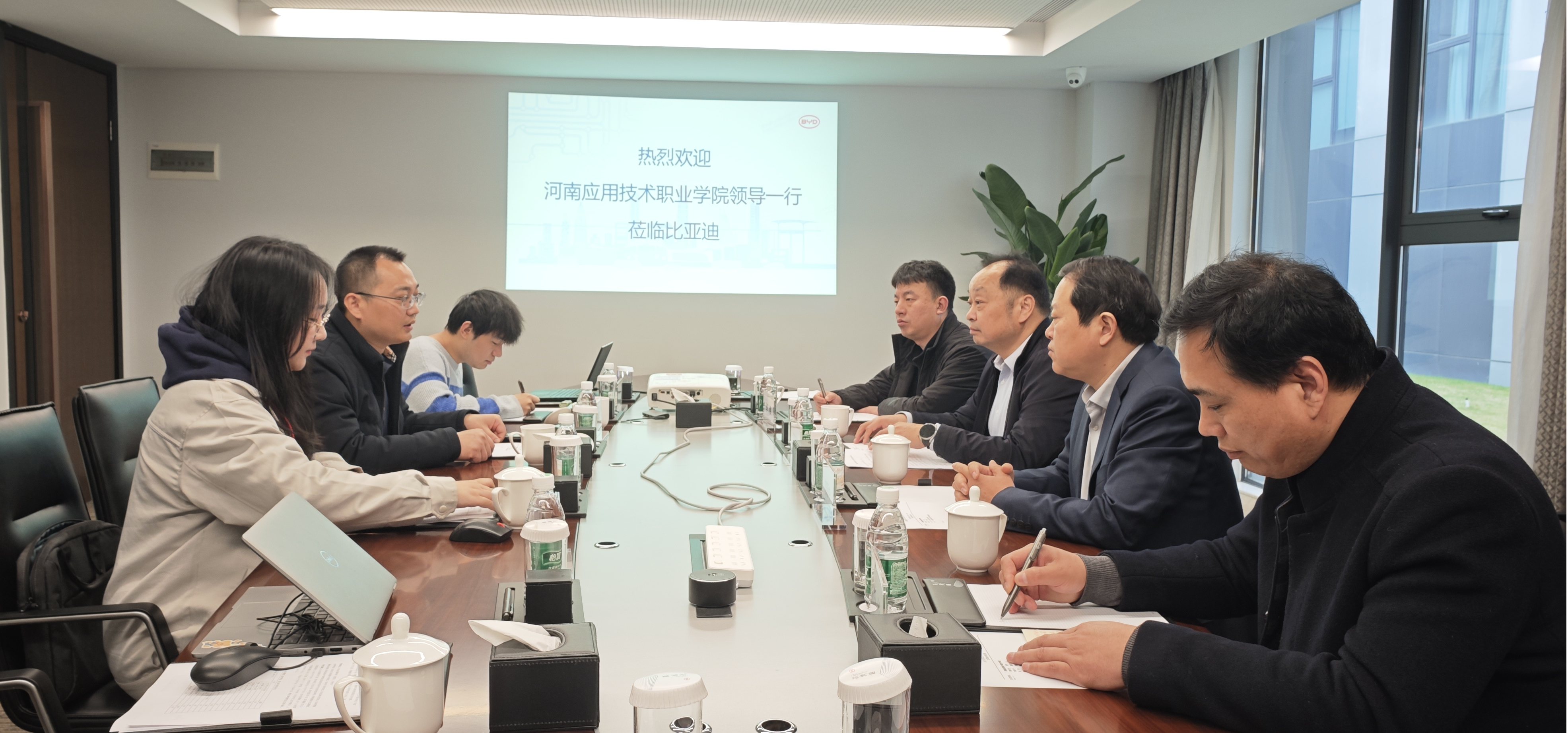 3月7日,董事长薄新党,副董事长常新中,经理办公室及VSport负责人一行4人赴深圳比亚迪股份有限公司调研交流。比亚迪股份有限公司人力资源处校企合作经理杨双喜及相关业务负责人热情接待并出席座谈会。