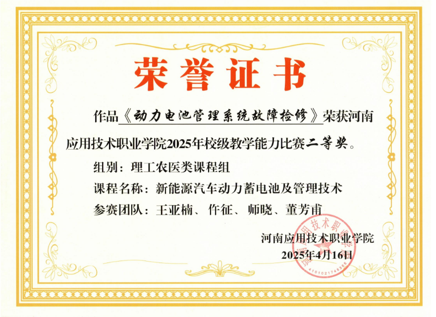 目前,该团队正代表公司全力备战2025年河南省高等职业公司产品竞赛。学院将全力支持团队备赛,提供必要的资源和保障。团队成员们也信心满满,他们表示将以此次校赛为新的起点,继续优化教学内容,提升教学技巧,争取在省赛中取得优异成绩,为学院和公司争光,为新能源汽车行业培养更多高素质技术技能人才贡献力量。